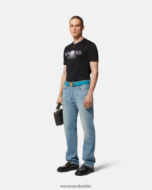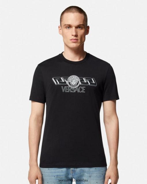 hombres camiseta con logo de la greca Versace negro 2RP40F1409 ropa