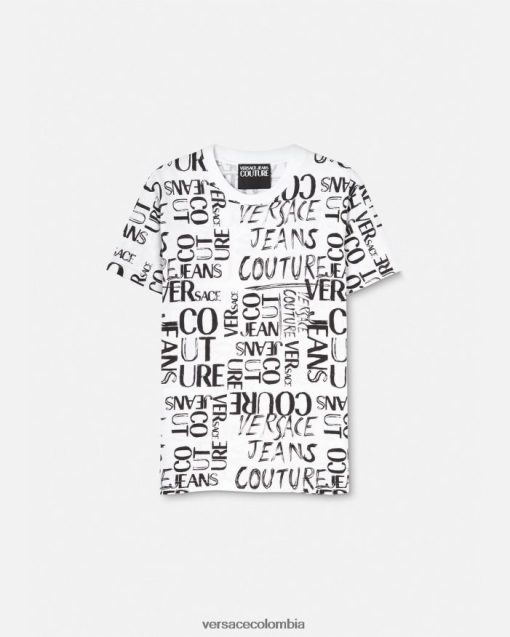 hombres camiseta con logo y garabato Versace blanco 2RP40F2369 ropa