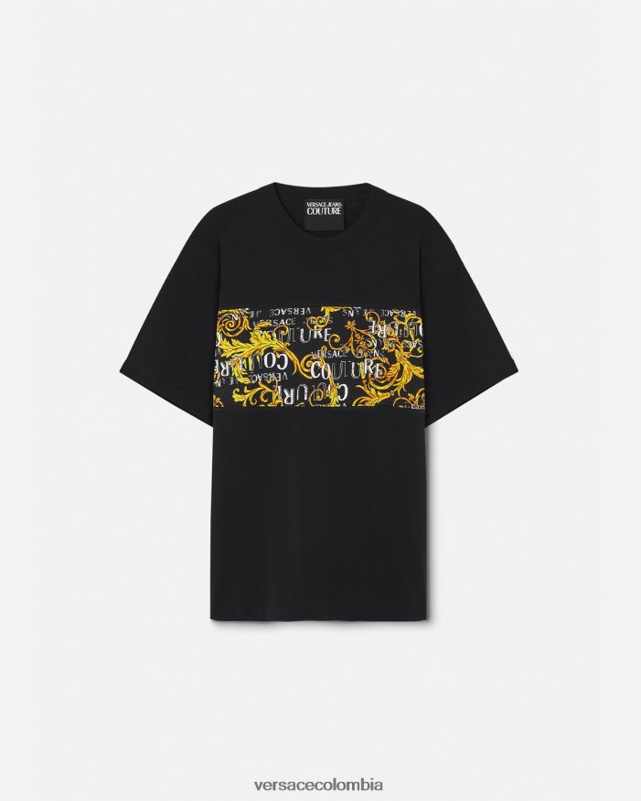 hombres camiseta de alta costura con logo Versace oro negro 2RP40F2388 ropa