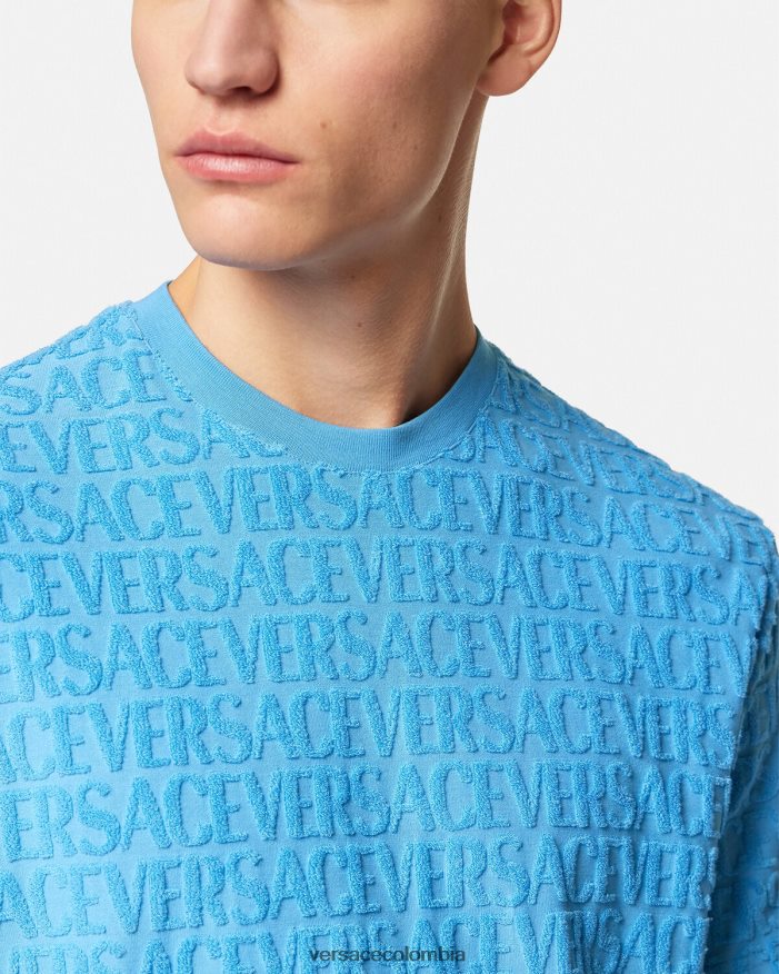 hombres camiseta tipo toalla Versace azul claro 2RP40F1352 ropa