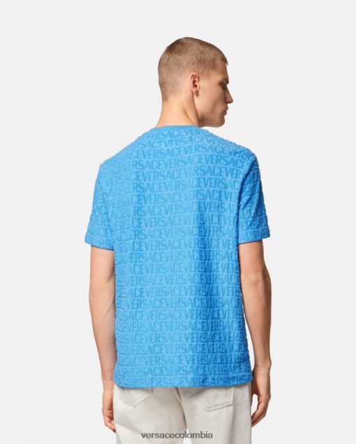 hombres camiseta tipo toalla Versace azul claro 2RP40F1352 ropa