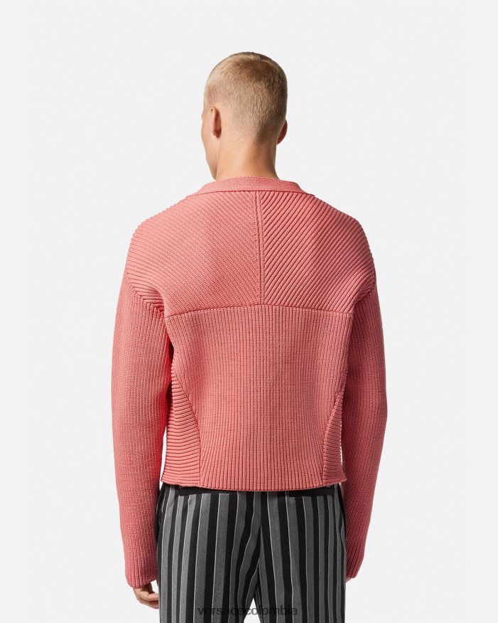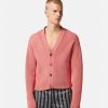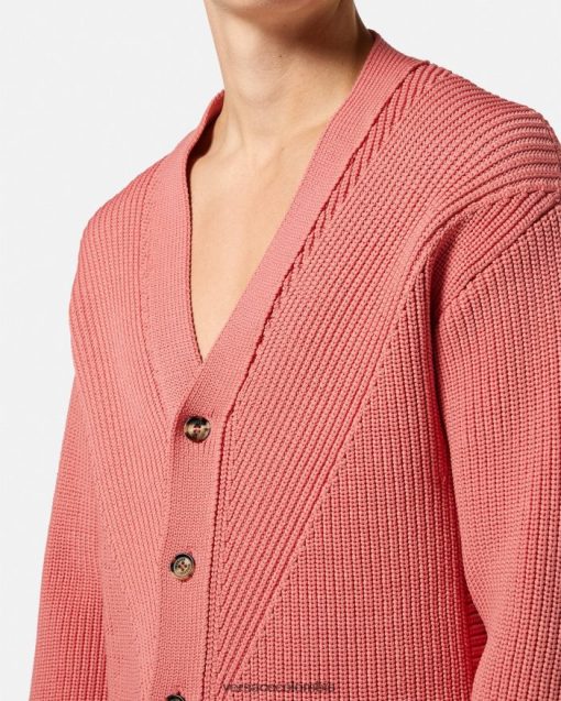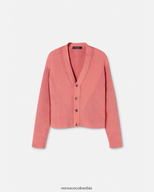 Este cárdigan abotonado de punto trenzado presenta un motivo de intarsia en forma de V tonal en la parte delantera.