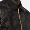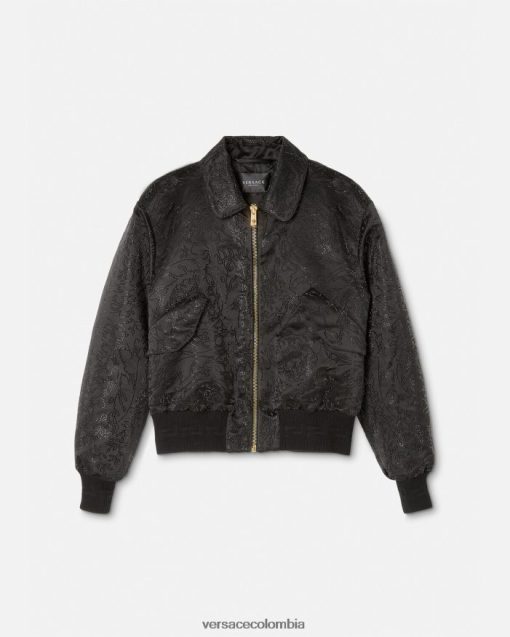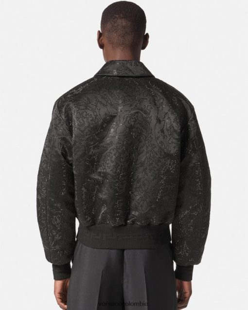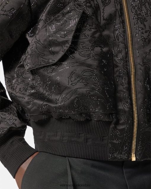 Con un acabado satinado, esta chaqueta bomber acolchada presenta adornos de cristal de silueta barroca en tonos tonales y está detallada con una cremallera de Medusa. El motivo de La Greca de la marca está tejido en los ribetes acanalados y tiene un forro acolchado de rombos.