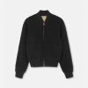 En una mezcla de lana, esta chaqueta bomber reversible presenta un logotipo de Versace con textura de rizo y el motivo de La Greca en un lado, y el estampado Barocco 660 en el reverso. ribetes de canalé y bolsillos laterales rematan la prenda.