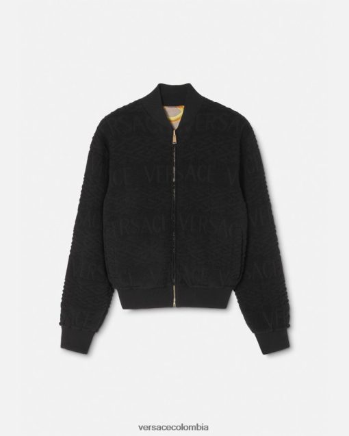 En una mezcla de lana, esta chaqueta bomber reversible presenta un logotipo de Versace con textura de rizo y el motivo de La Greca en un lado, y el estampado Barocco 660 en el reverso. ribetes de canalé y bolsillos laterales rematan la prenda.