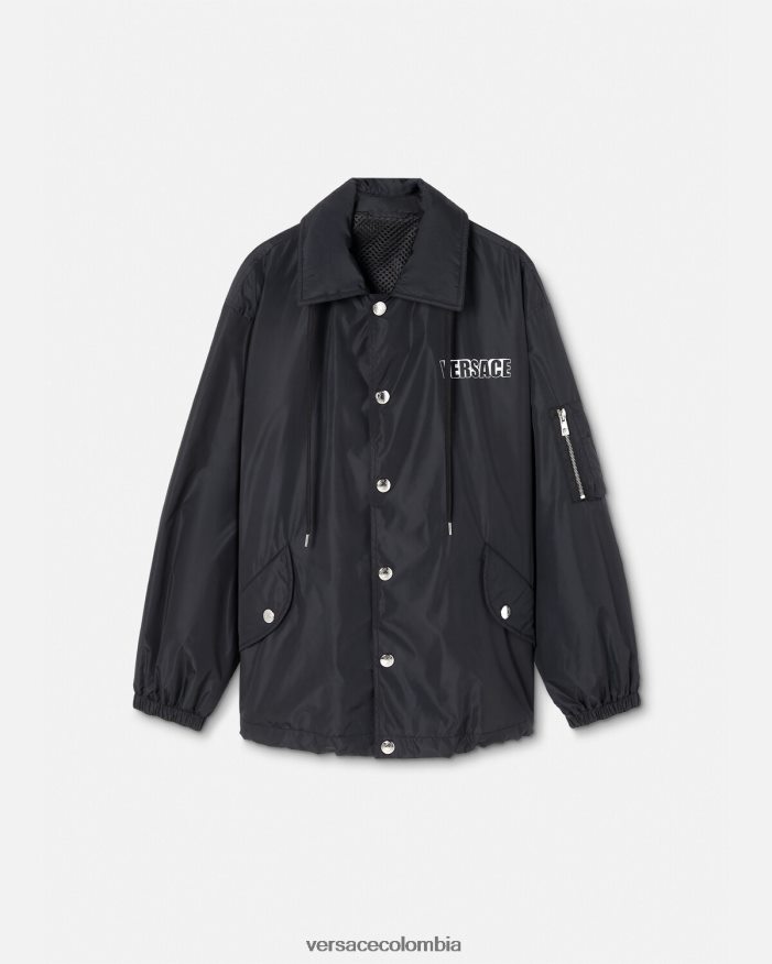 Esta chaqueta tipo blusón confeccionada en nailon técnico presenta un estampado gráfico en la parte posterior que reinventa esculturas clásicas con símbolos de Versace. Completo con botones a presión y un forro de malla transpirable, el estilo de ropa exterior está equipado con una capucha ligera y plegable.
