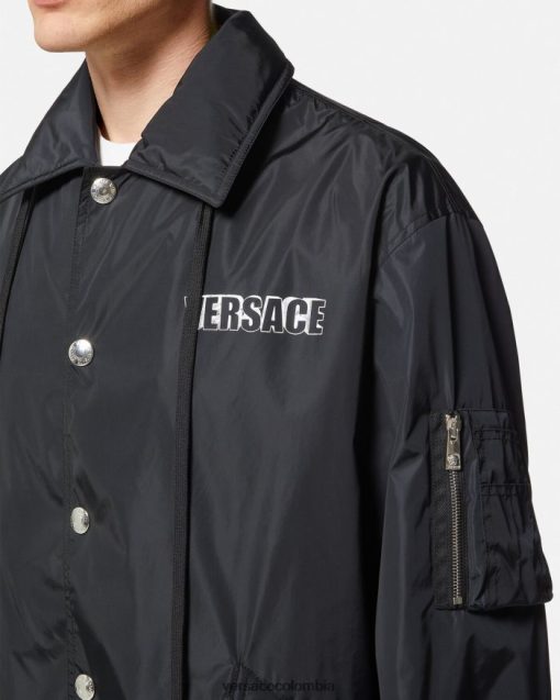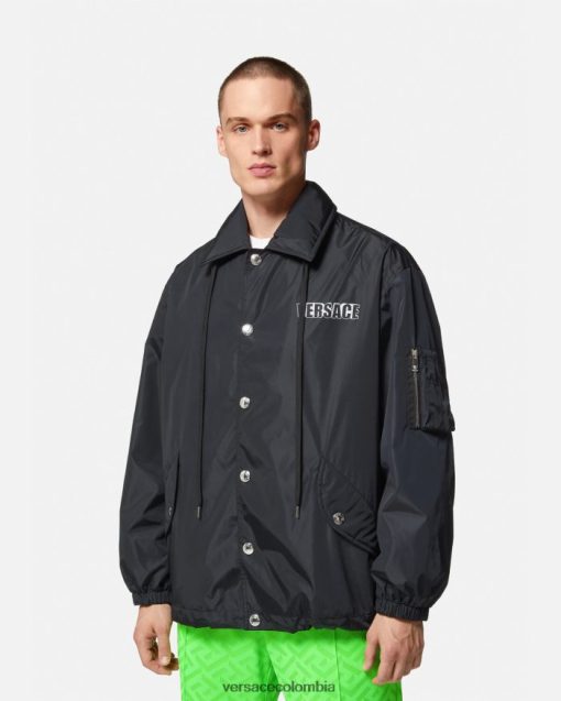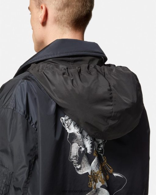 Esta chaqueta tipo blusón confeccionada en nailon técnico presenta un estampado gráfico en la parte posterior que reinventa esculturas clásicas con símbolos de Versace. Completo con botones a presión y un forro de malla transpirable, el estilo de ropa exterior está equipado con una capucha ligera y plegable.