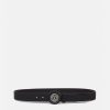 Este cinturón de cuero está fabricado en Italia y rematado con la hebilla con el logo del emblema en V.