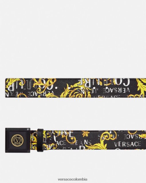 un cinturón con logo estampado de alta costura y hebilla con placa con emblema en V.