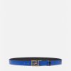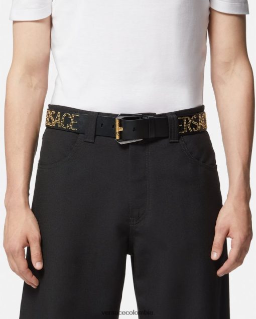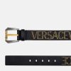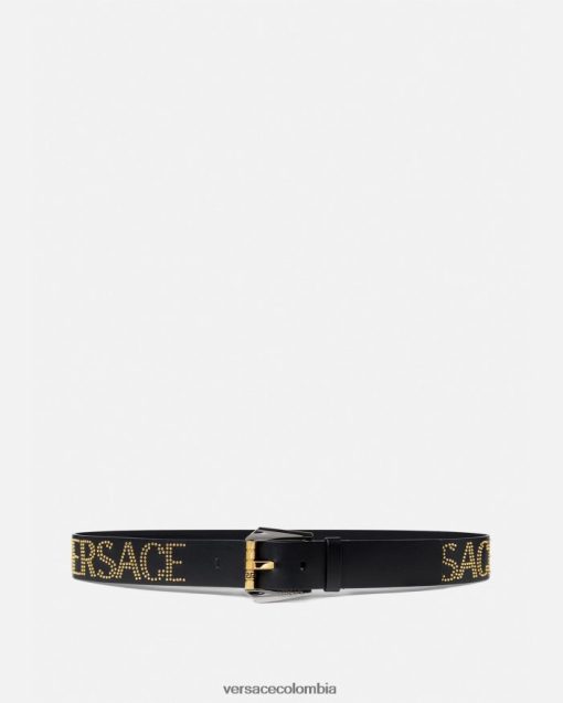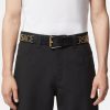 Este cinturón, confeccionado en cuero, presenta un logotipo con tachuelas y una hebilla giratoria con Greca en metal de dos tonos.
