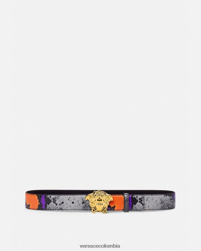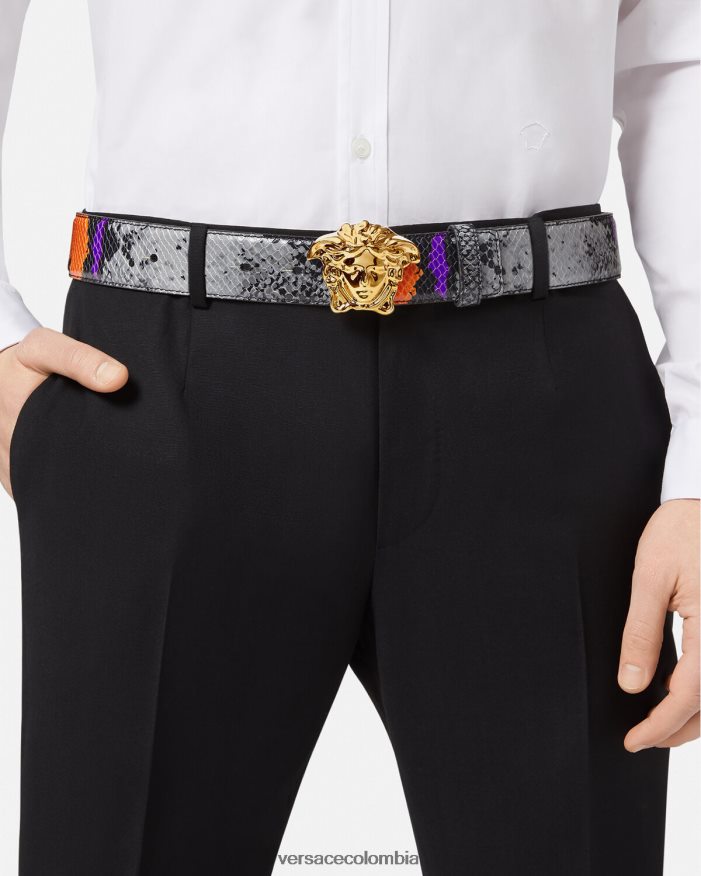 un cinturón de cuero con estampado de pitón con efecto de piel de serpiente y hebilla con detalle de medusa.