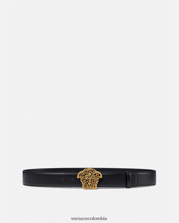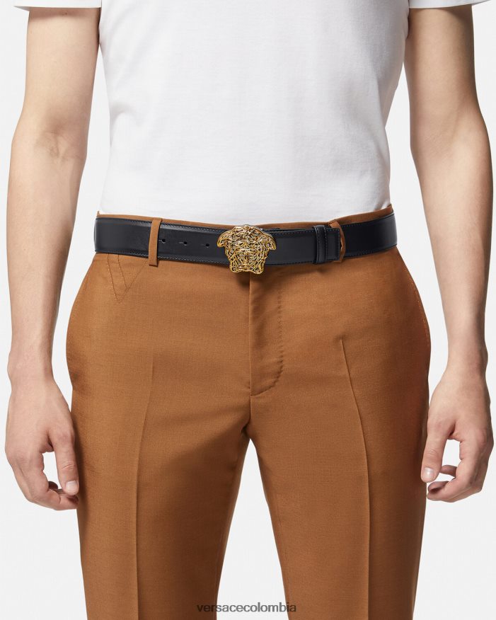 hombres cinturón de cuero con Medusa Biggie esmaltada Versace oro negro 2RP40F1608 accesorios