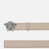 Este cinturón, confeccionado en Italia con piel flexible, está adornado con una hebilla de Medusa.