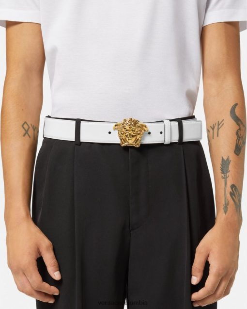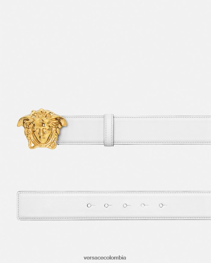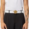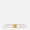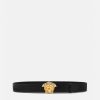 Este cinturón, confeccionado en Italia con piel flexible, está adornado con una hebilla de Medusa.