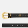 Este cinturón de cuero con tachuelas, adornado con piezas metálicas de Medusa, presenta la hebilla tradicional de Medusa con trabillas decorativas.
