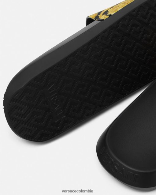 Estas chanclas de goma presentan un estampado barroco en la parte superior y plantillas moldeadas para mayor comodidad.