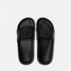 Estas chanclas para piscina están hechas de goma y tienen una placa tridimensional de la Medusa y un borde de greca en la parte superior. Cuentan con un logo grabado y plantillas moldeadas para mayor comodidad.