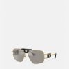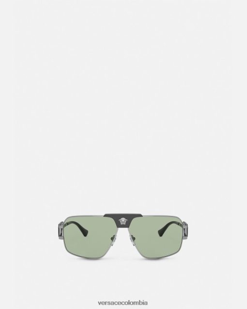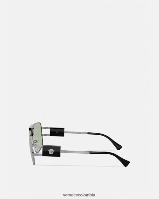 Estas gafas de sol cuadradas de estilo piloto tienen finas monturas de metal, detalladas con un puente nasal de acetato y acentuadas con piezas metálicas de medusa en las patillas y el puente nasal.