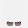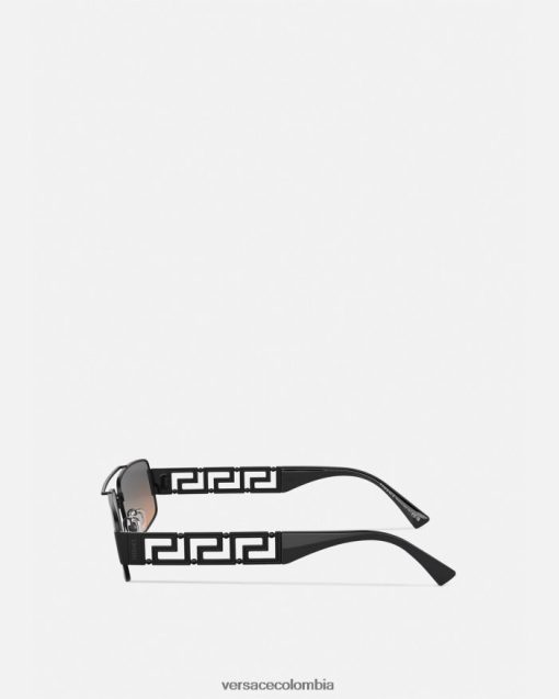 De forma cuadrada, estas gafas de sol tienen monturas de metal y cuentan con una greca de metal calada en las patillas.
