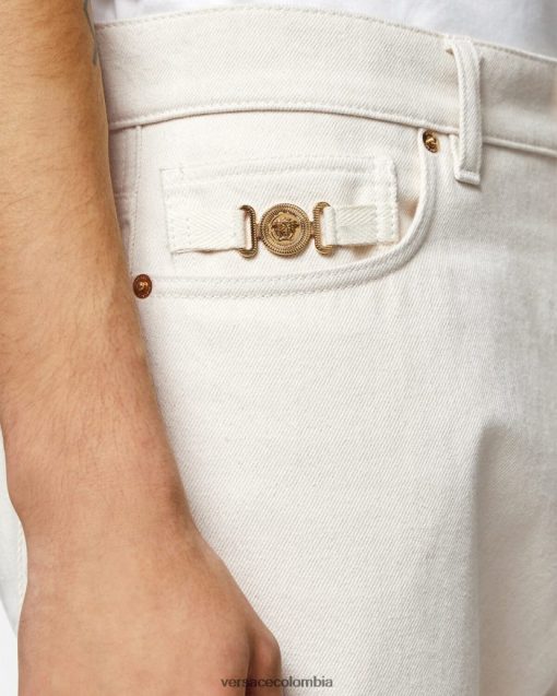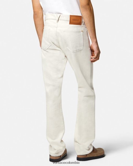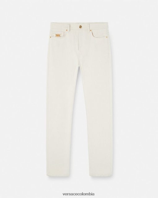Estos jeans de pierna recta están confeccionados en mezclilla de algodón y presentan un emblema de Medusa Biggie en el bolsillo y un botón de Medusa.