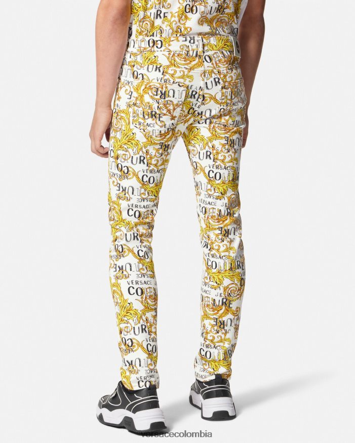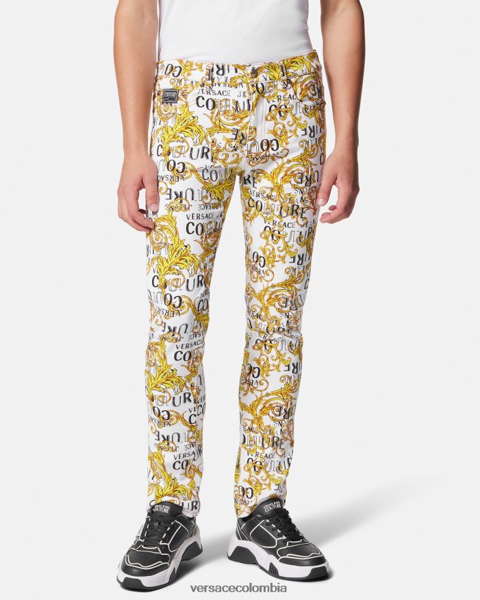hombres jeans slim con logo de alta costura Versace oro y blanco 2RP40F2428 ropa