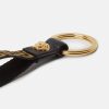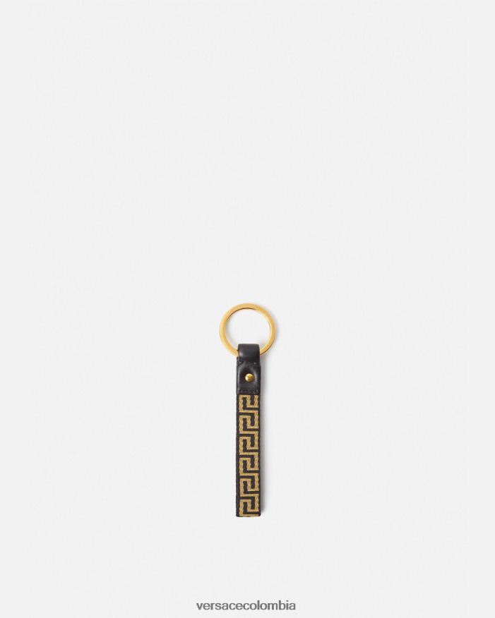 Un accesorio que añade una dosis de actitud versace a lo cotidiano, este llavero con cinta de Greca está enriquecido con una tachuela dorada de Medusa.