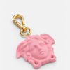 Un accesorio divertido para complementar bolsos, cinturones y más de Versace, este llavero de goma tiene la forma del emblema característico de Versace, la medusa.