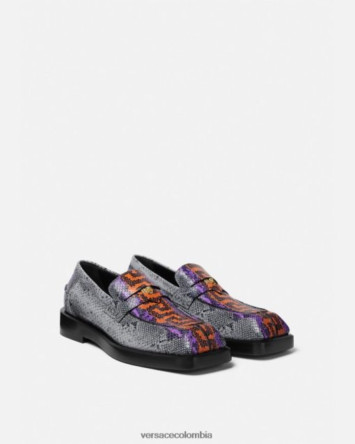 Confeccionados en piel con estampado Greca de pitón, estos mocasines con cordones cuentan con una puntera cuadrada cincelada. Están detallados con un adorno de medusa cuadrado en la correa tipo penny y se asientan sobre tacones apilados de cuero.