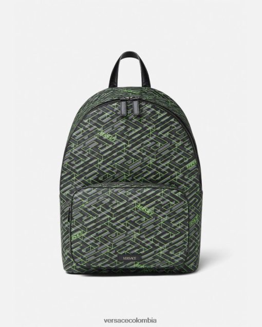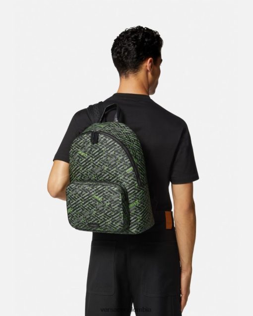 Esta mochila, confeccionada con lona revestida, presenta el estampado característico de La Greca con inyecciones de colores neón brillantes. El estilo práctico tiene un gran bolsillo frontal de fácil acceso, mientras que el espacioso interior tiene un compartimento acolchado para el portátil. Un patrón de greca bordado aparece en el panel de malla transpirable en la parte posterior.