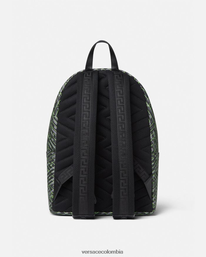 Esta mochila, confeccionada con lona revestida, presenta el estampado característico de La Greca con inyecciones de colores neón brillantes. El estilo práctico tiene un gran bolsillo frontal de fácil acceso, mientras que el espacioso interior tiene un compartimento acolchado para el portátil. Un patrón de greca bordado aparece en el panel de malla transpirable en la parte posterior.