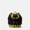 Esta mochila, confeccionada con lona revestida, presenta el logotipo de Versace estampado por toda la prenda. El estilo práctico tiene un gran bolsillo frontal para un fácil acceso, mientras que el espacioso interior tiene un bolsillo con cremallera y cremallera. Un patrón de greca de jacquard aparece en las correas de los hombros.