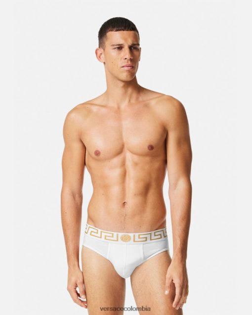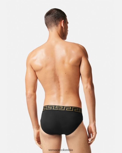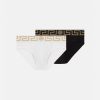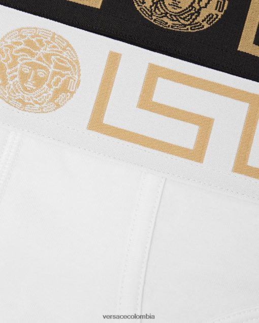 un conjunto de 2 calzoncillos de algodón con motivos de greca y medusa central en la cinturilla elástica.