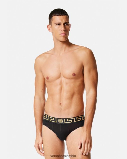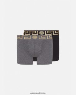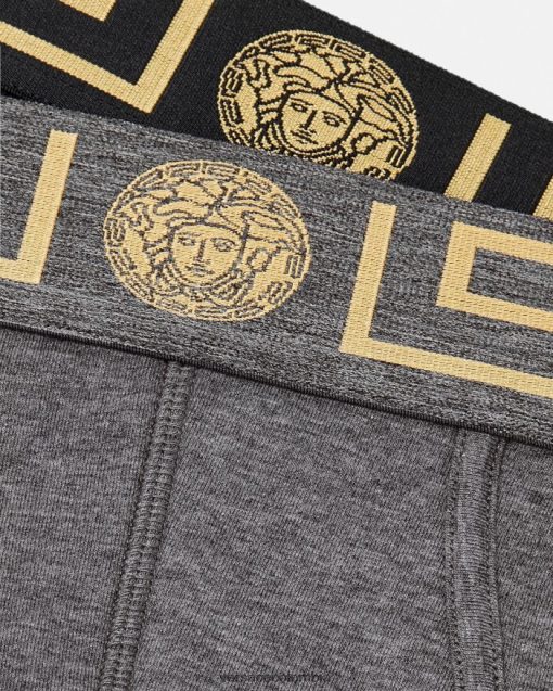 un conjunto de 2 calzoncillos de algodón con motivos de greca y medusa central en la cinturilla elástica.
