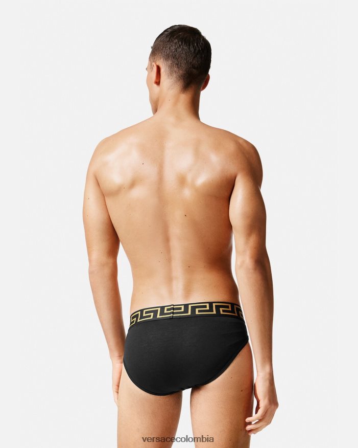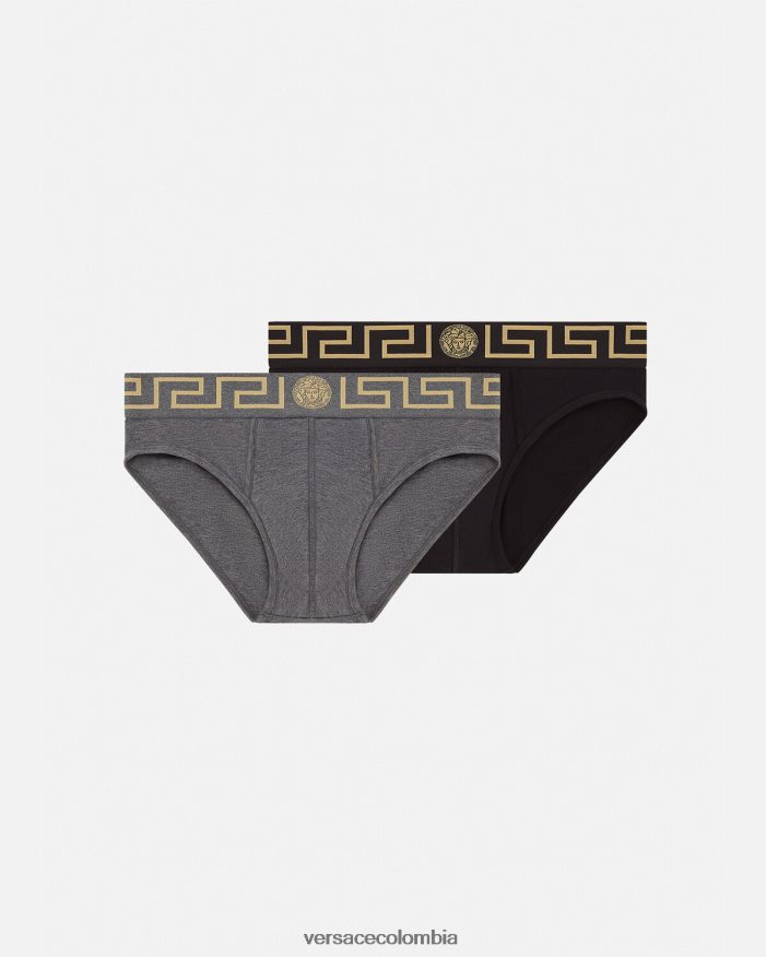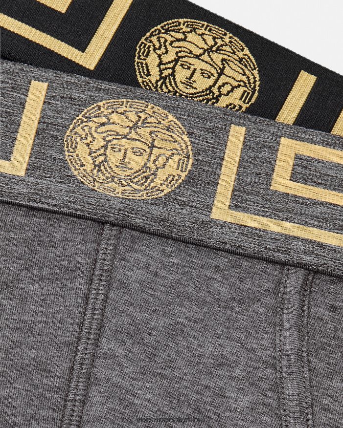 un conjunto de 2 calzoncillos de algodón con motivos de greca y medusa central en la cinturilla elástica.