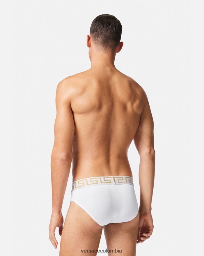 un conjunto de 2 calzoncillos de algodón con motivos de greca y medusa central en la cinturilla elástica.