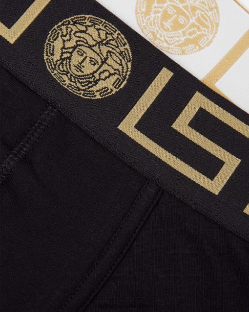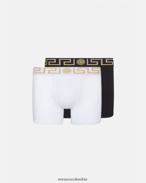 hombres Pack de 2 calzoncillos largos con borde de Greca Versace blanco negro 2RP40F1763 ropa interior y ropa de playa