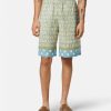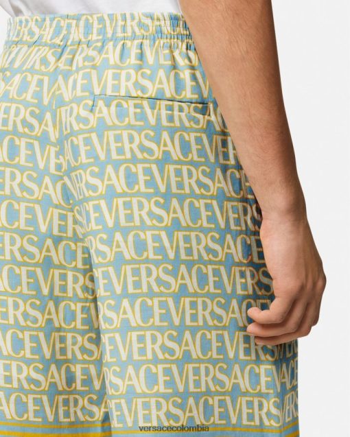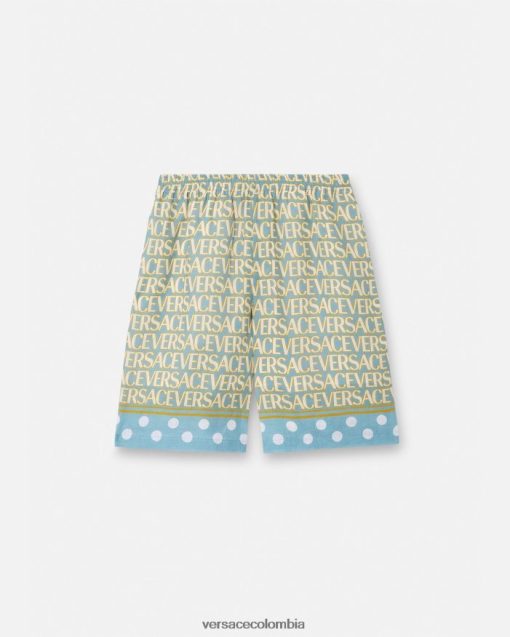 Estos pantalones cortos hasta la rodilla están confeccionados en lino y presentan un estampado de lunares por toda la prenda de Versace.