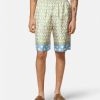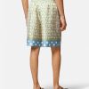 Estos pantalones cortos hasta la rodilla están confeccionados en sarga de pura seda y presentan un estampado de lunares de Versace por toda la prenda.