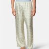 Estos pantalones de pijama de sarga de seda presentan un estampado integral del logo de Versace con una cinturilla elástica con borde de Greca.