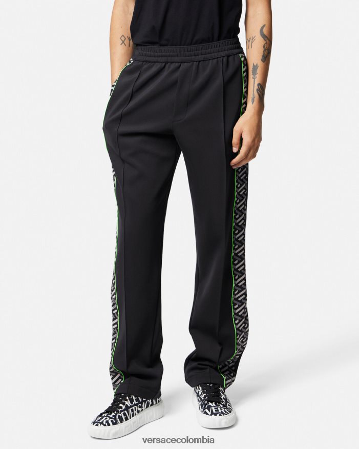 Estos pantalones deportivos están confeccionados en nailon compacto y elástico y presentan el estampado de La Greca en las piernas y el logo en la parte posterior. Los puños se pueden desabrochar para facilitar el movimiento. El estilo combina perfectamente con una chaqueta deportiva a juego.