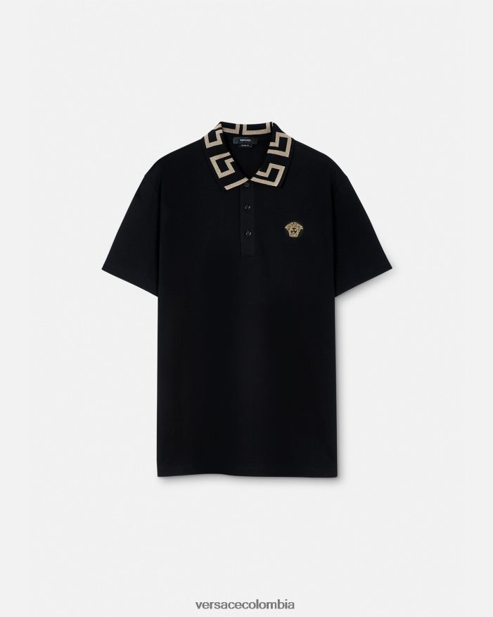 Confeccionado en piqué de algodón, este polo de manga corta presenta una tapeta de tres botones, un bordado de greca de lúrex en el cuello y un logo de Medusa en el pecho.