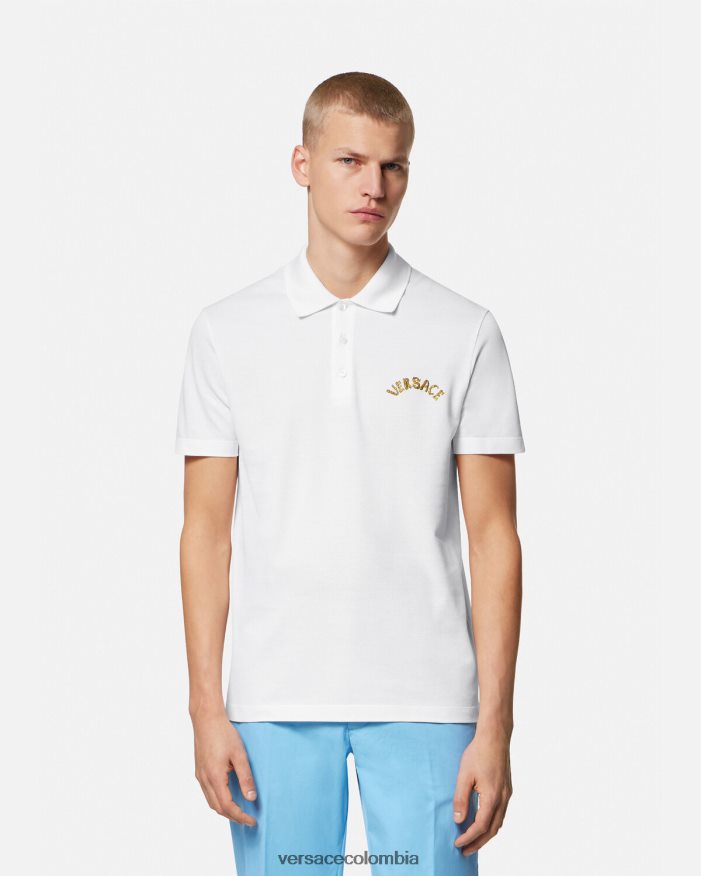 hombres playera tipo polo con logo barroco y conchas marinas Versace blanco 2RP40F1361 ropa