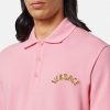 Este polo de manga corta está confeccionado en piqué de algodón con una tapeta de tres botones y presenta un logotipo de Versace bordado en el pecho con un motivo barroco de conchas.