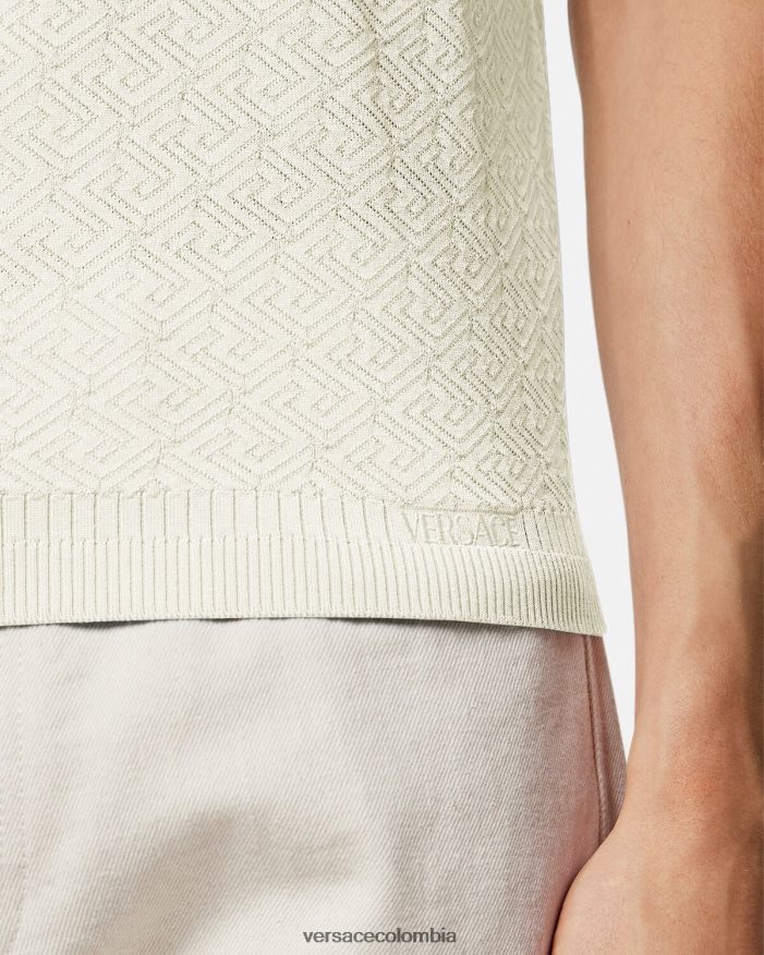 hombres polo de punto de manga corta la greca Versace beige 2RP40F1329 ropa