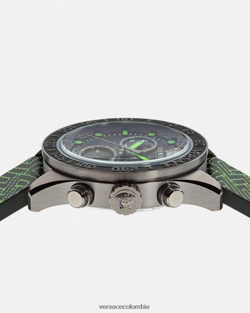 - esfera: esfera negra con Versace por toda la superficie, patrón de greca y greca en la esfera interior; logotipo de versace y medusa a las 12 h