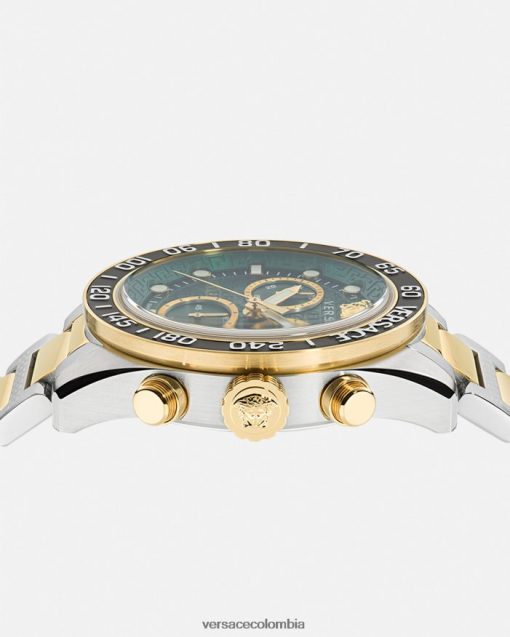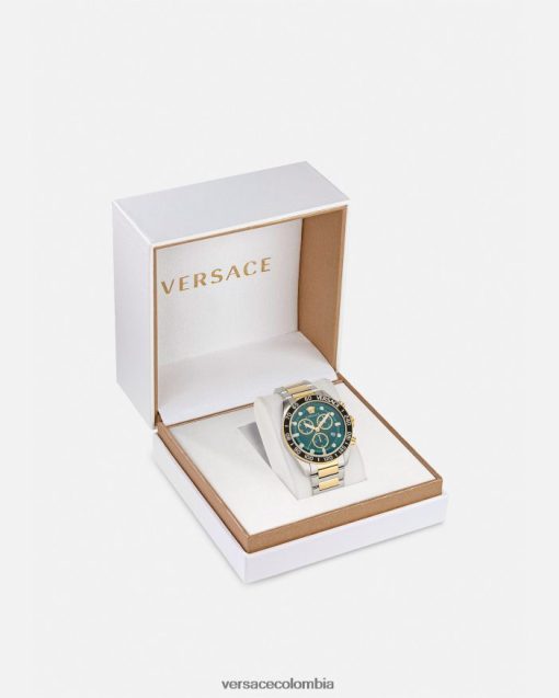 - esfera: esfera verde con detalles de Versace en toda su superficie, patrón de greca y greca en la esfera interior; logotipo de versace y medusa a las 12h