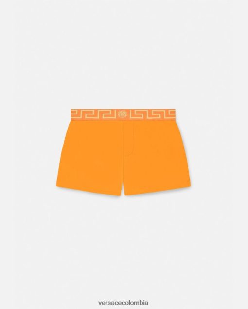 Estos shorts de baño, una versión atlética de un estilo característico, presentan la greca con un motivo central de medusa en la cinturilla elástica.