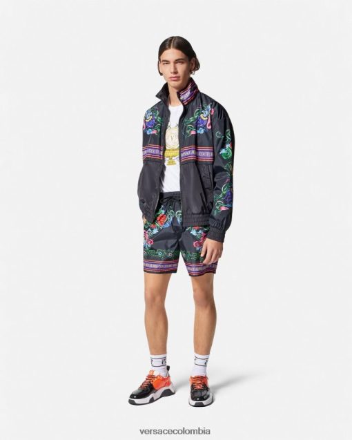 Estos pantalones cortos tienen una cintura elástica con cordón y cuentan con un estampado de jardín con emblema en V por toda la prenda.