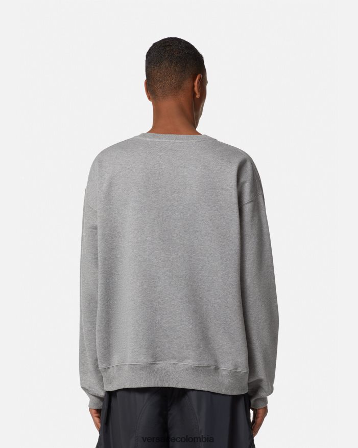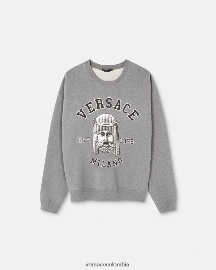 Confeccionada con punto de algodón, esta sudadera con cuello redondo tiene hombros caídos y presenta una interpretación a la maschera del logotipo universitario, un símbolo orgulloso de pertenecer a la familia Versace.
