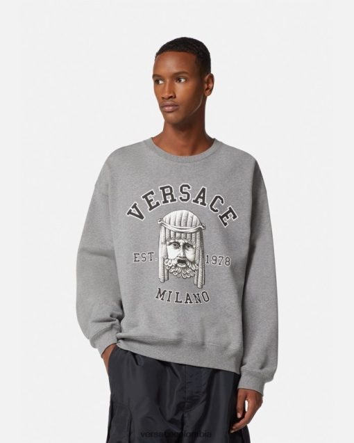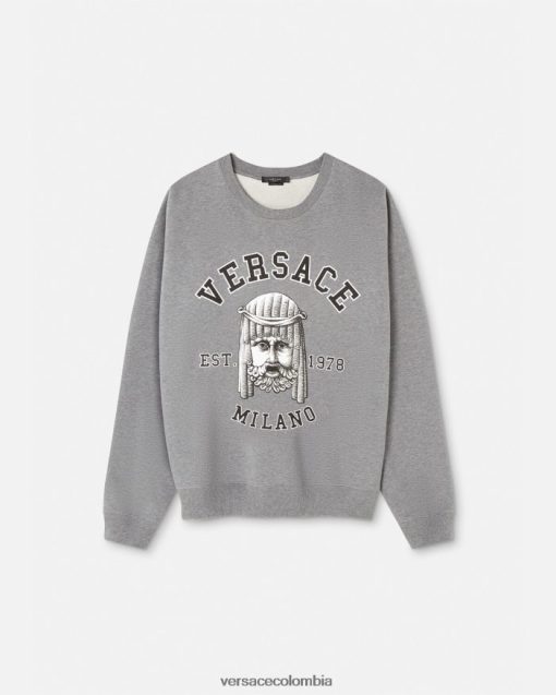 Confeccionada con punto de algodón, esta sudadera con cuello redondo tiene hombros caídos y presenta una interpretación a la maschera del logotipo universitario, un símbolo orgulloso de pertenecer a la familia Versace.